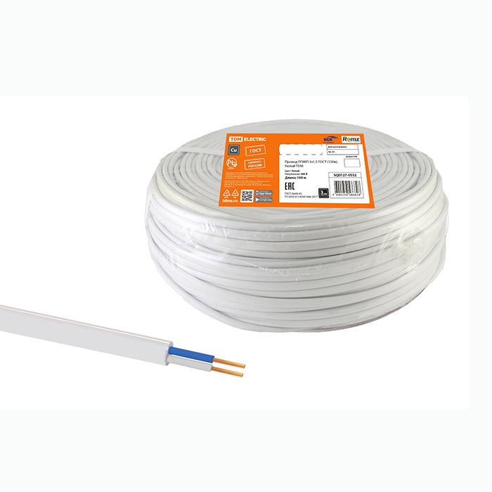 Провод ПГВВП 2х2,5 ГОСТ (100м), белый TDM