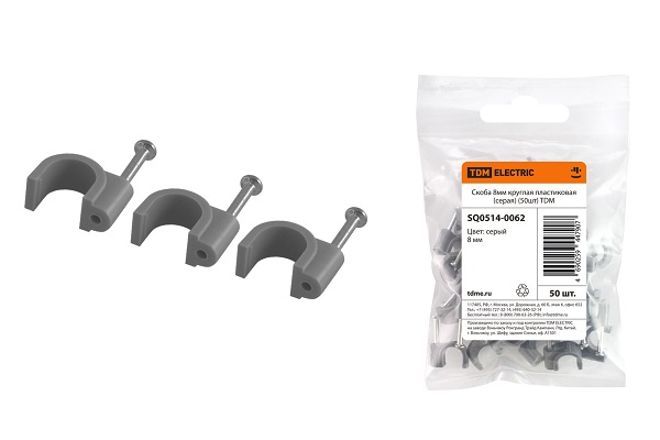 Скоба 12мм плоская пластиковая (белая) (50шт) TDM (50/300)