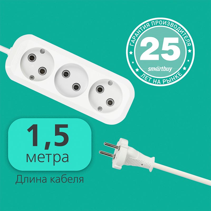 Удлинитель бытовой ТМ Союз 2200 Вт (з) 3гн. (ПВС 3*075) 1,5м, 10А (35)