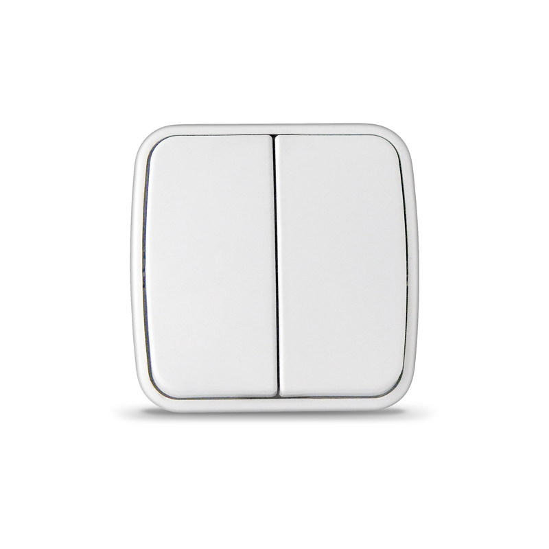 Выключатель двухклавишный "UNIVersal" серия "Клио", IP44, о/у, 10А, 220В, белый (еврослот) (10)