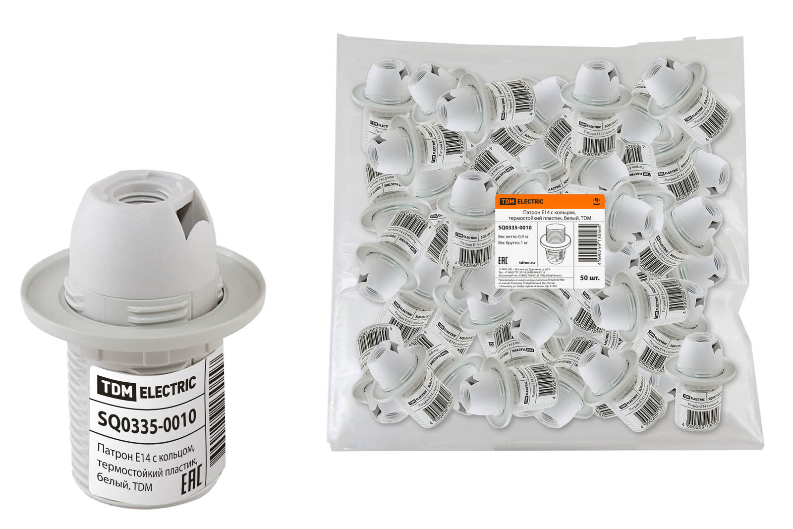 Патрон Е14 с кольцом, термостойкий пластик, белый, TDM (50/200)