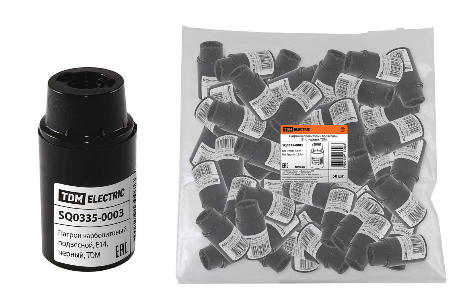 Патрон карболитовый подвесной, Е14, черный, TDM (50/200)