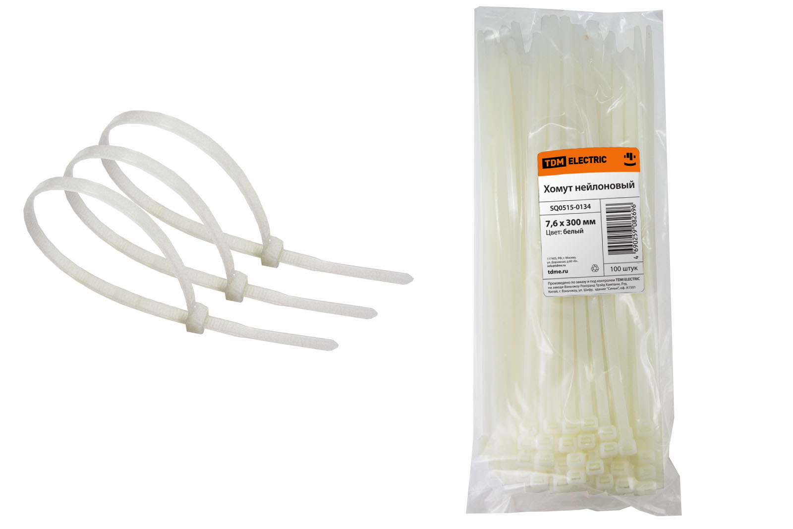 Хомут 7,6х300мм нейлон (белый) (100шт) TDM (5/30)