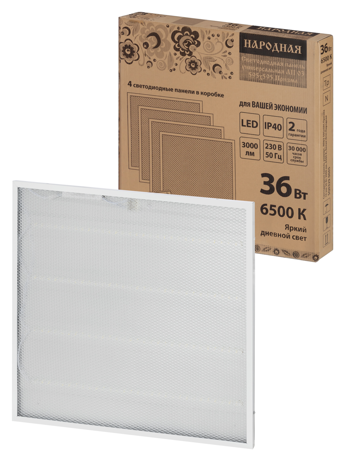 Светодиодная панель универс. ЛП03 595х595 Призма 19 мм 36 Вт 3000 лм, 6500 К, белая (б/п) Народная