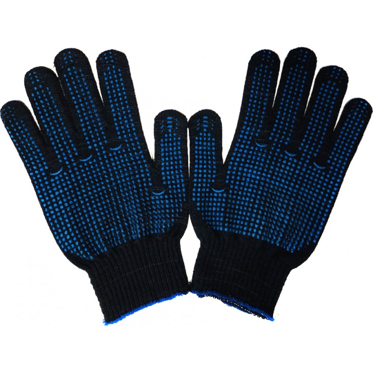 Перчатки 10 класс (6 нитей) с ПВХ черные