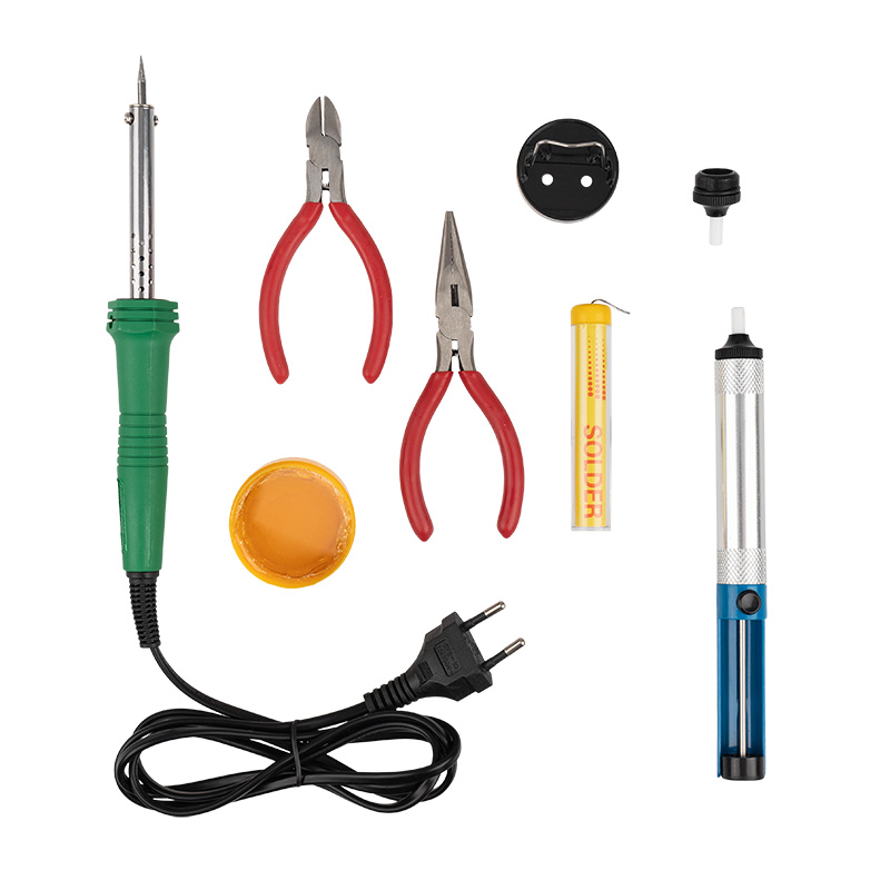 Набор для пайки (паяльник с керамическим нагревателем 60Вт, 220-480°C, подставка с губкой, набор из 5 жал) REXANT