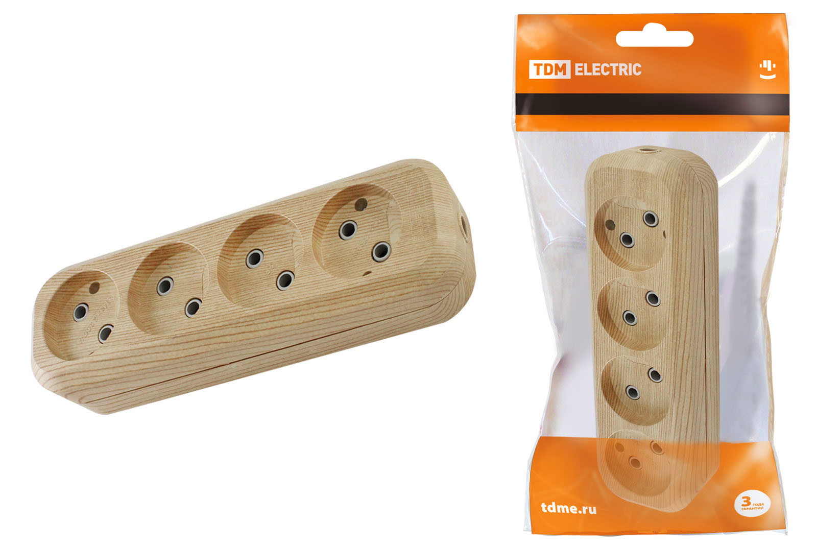 Розеточная колодка 3 гнезда 2П 16А макс. "Ретро" 250B (карболит) TDM (20/120)