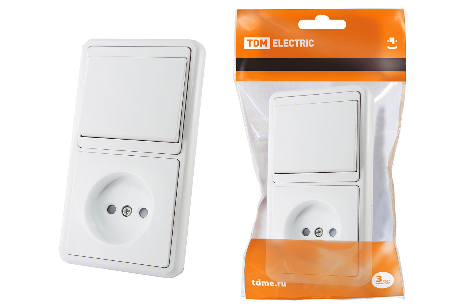 Блок комбинированный БКВР 1-но кл. выкл + розетка 2П с з/ш TDM (10/120)