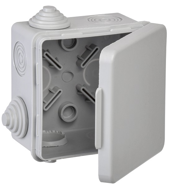 Коробка распаячная КМ для открытой проводки с откидной крышкой 80х80х50мм IP54 4 гермоввода (7035) GENERICA
