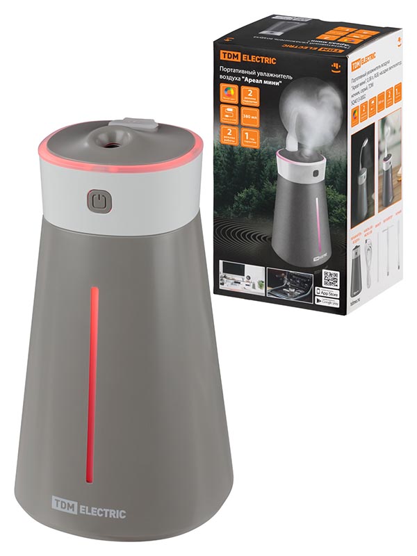 Портативный увлажнитель воздуха "Ареал мини", 0,38 л, RGB, насадки: вентилятор, ночник, серый, TDM