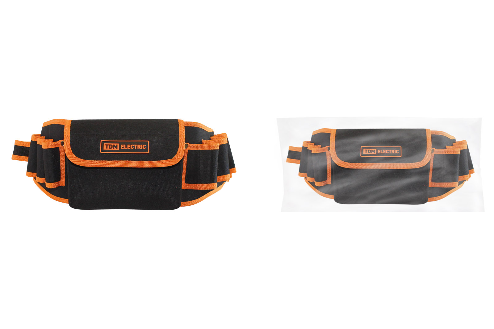 Пояс-сумка монтажника ПМ-1, отсек для оснастки, 7 секций, карабин, мет. скоба (570х155х50 мм), «Алмаз» TDM