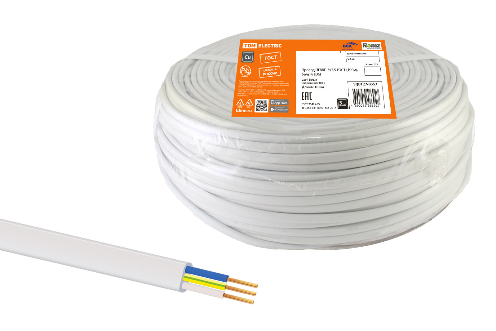 Провод ПГВВП 3х2,5 ГОСТ (100м), белый TDM