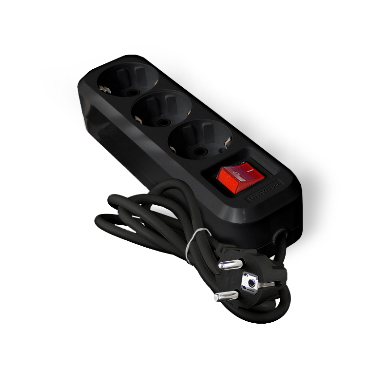 Удлинитель "UNIVersal" S-303 ПВС 3*1 3гн. с/з выкл 5м (еврослот) черный