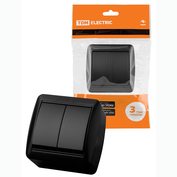 Выключатель двухклавишный "UNIVersal" серия "Афина", с/у, 10А, 220В, графит (еврослот)