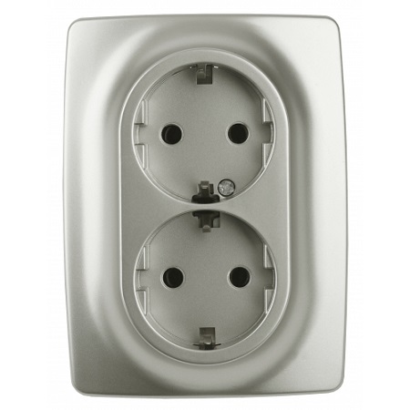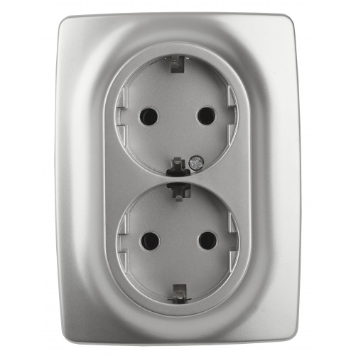 12-2108-03 ЭРА Розетка 2X2P+E Schuko со шторками, 16A-250В, IP20, Эра12, алюминий