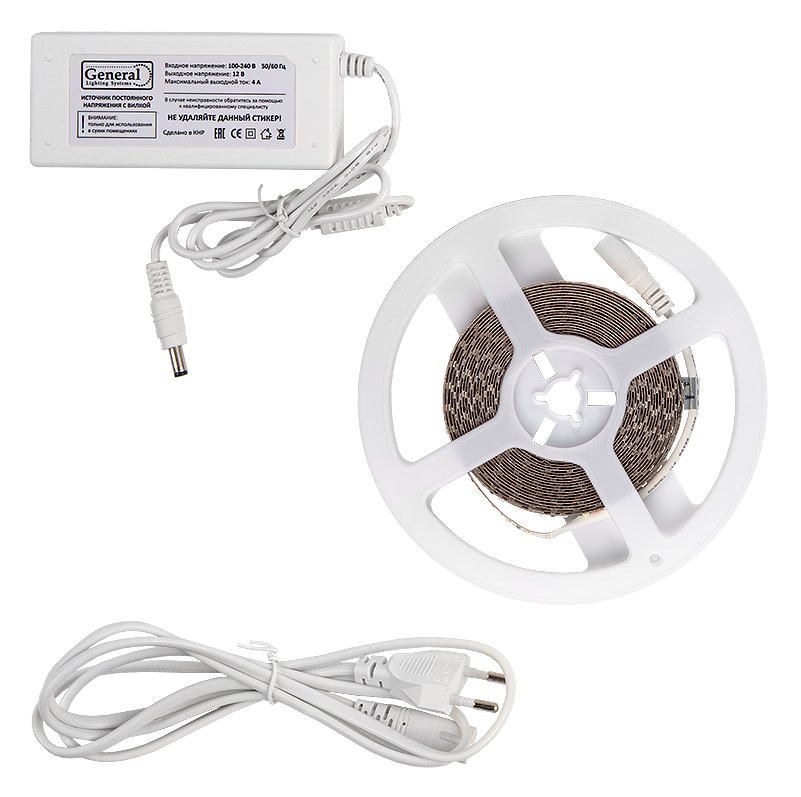 Лента светодиодная GLS-2835-120-9.6-12-IP20-PRO-6-5-KIT готовый комплект 5м с адаптером