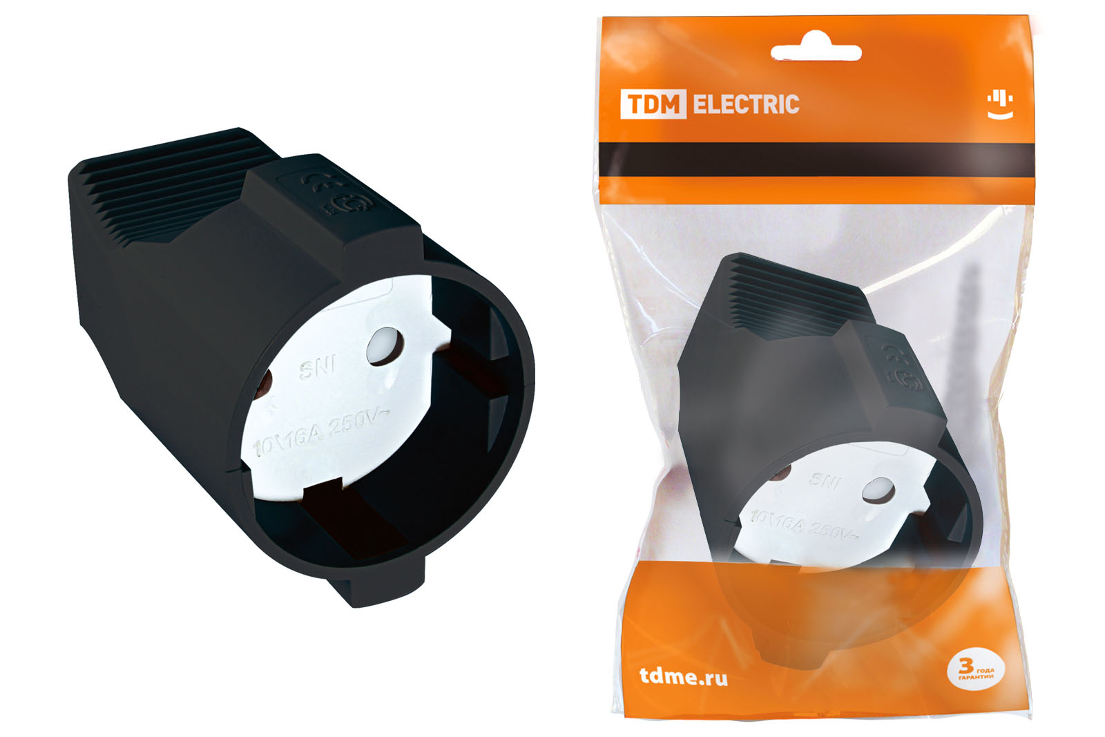 Кабельная розетка рифленая 2П+З 16А 250B белая TDM (штепсельное гнездо)